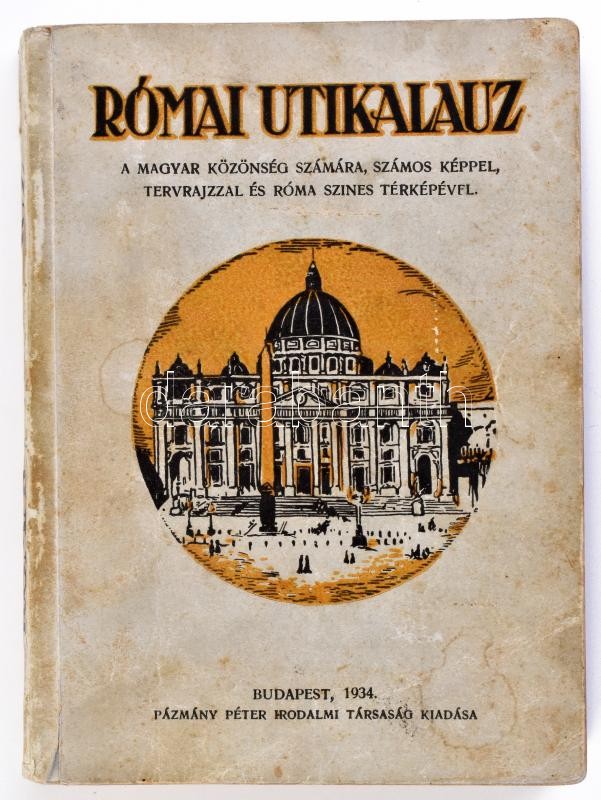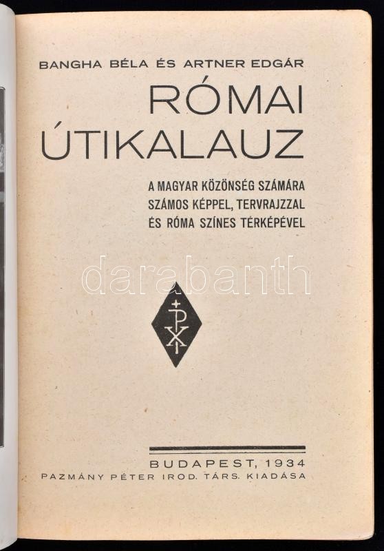 Description: Bangha Béla, Artner Tivadar: Római utikalauz. A magyar közönség számára, számos képpel, tervrajzzal, és Róma színes térképével. Budapest, 1934, Pázmány Péter Irod. Társ. Kiadói papírkötés, kissé foltos borító
