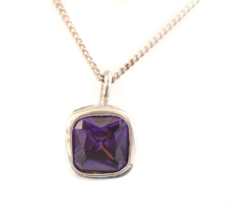 Ezüst(Ag) nyaklánc, lila köves függővel, jelzett, h: 46 cm, nettó: 2,0...