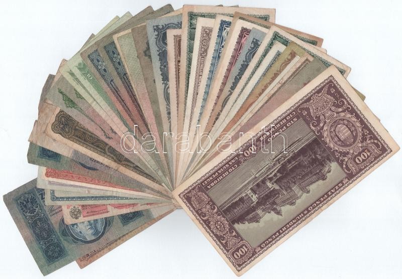33db vegyes korona, pengő, forint bankjegy, közte 1915. 10K piros "MAGYARORSZÁG" felülbélyegzéssel, 1945. 50P T:I--III-