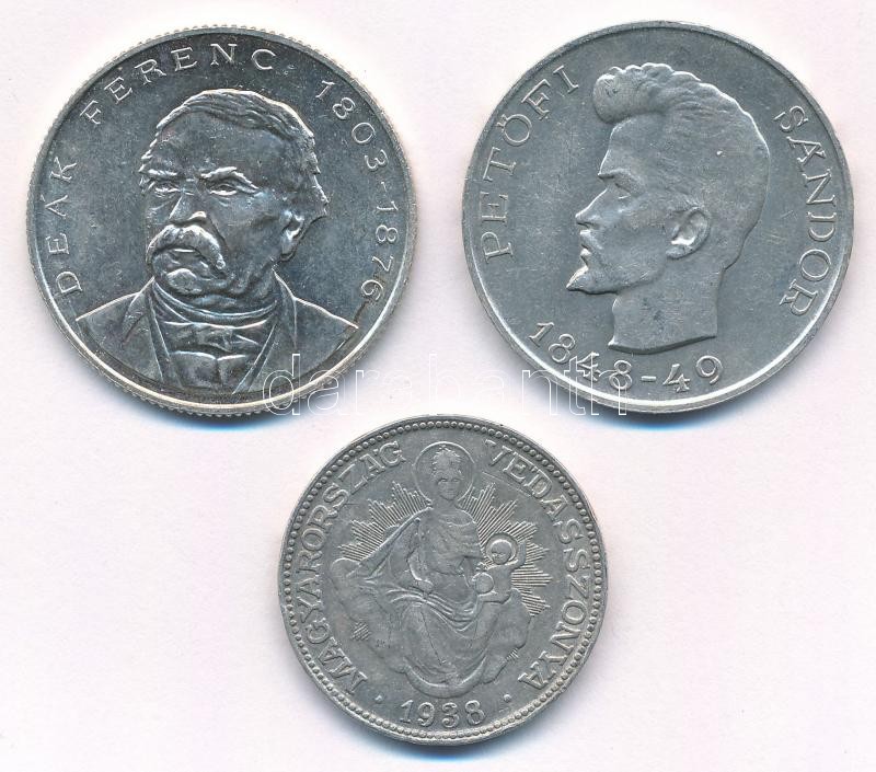1938. 2P Ag "Madonna" (ph., karc) + 1948. 5Ft Ag "Petőfi" + 1995. 200Ft Ag "Deák" T:1--2-