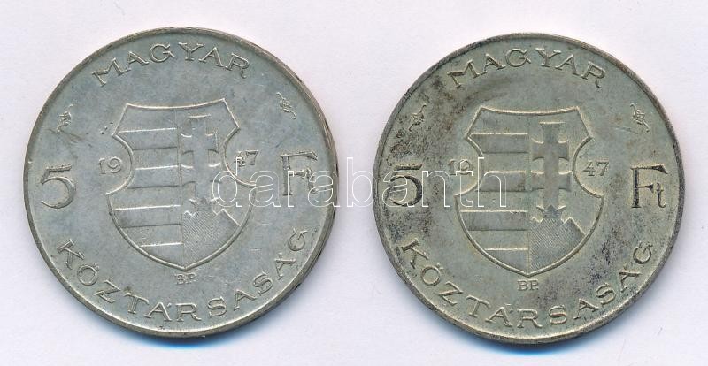 https://www.darabanth.com/en/401-Online-auction/401.0/Numismatics/Hungarian-coins-and-coins-with-Hungarian-mint-marks~2000008/1947-5Ft-Ag-Kossuth-2x-T2-2-patina-Adamo-F81~II2335128