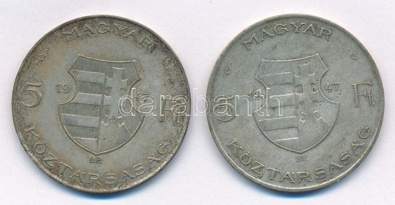 1947. 5Ft Ag "Kossuth" (2x) T:2-,3 patina Adamo F8.1