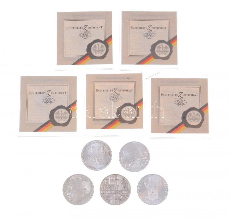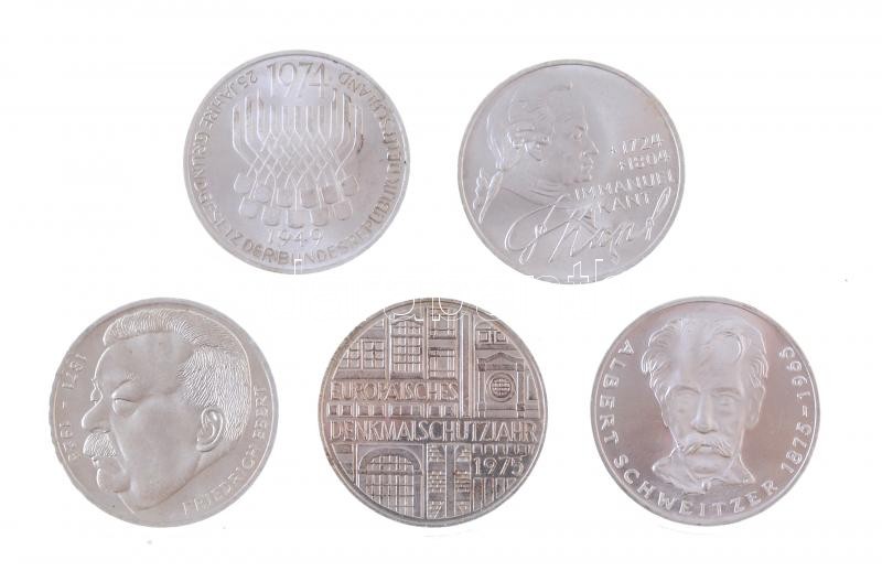 NSZK 1974-1975. 5M Ag (5xklf) emlékkiadások tanúsítványokkal T:1,1- FR...