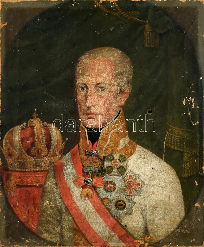 Description: Jelzés nélkül, feltehetően XIX. sz. festő alkotása: Habsburg-Lotaringiai János főherceg (1782-1859) portréja kitüntésekkel. Olaj, vászon, sérült. 66×52,5 cm
