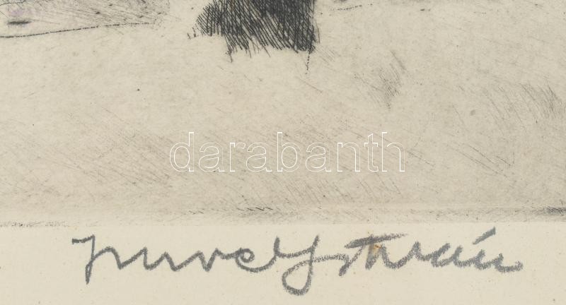 Rézkarc, papír, jelzett, 29×38 cm, sérült, kopott, üvegezett keretben.