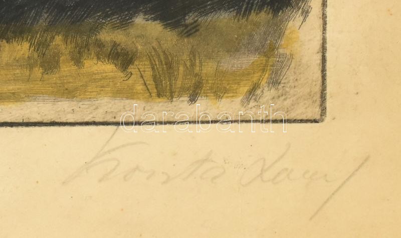 Koszta József (1861-1949), Prihoda István (1891-1956): Marokszedők. Színezett rézkarc, papír, jelzett (Koszta József). 23×28,5 cm