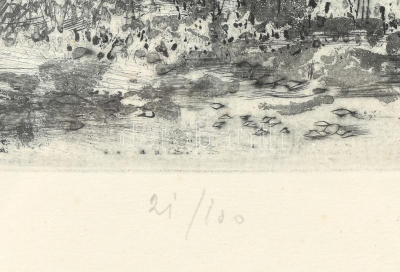 Láng Rudolf (1904-1991): Város, rézkarc, papír, 24x29cm, jelzett, lap ...