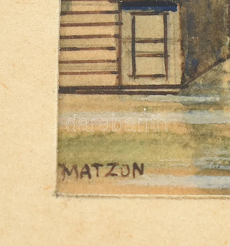 Matzon József (?-?): Velence, miniatűr. Színes tus, papír, jelzett. Paszpartuban, kissé kopott, üvegezett fa keretben, hátulján feliratozott, 5,5x3,5 cm