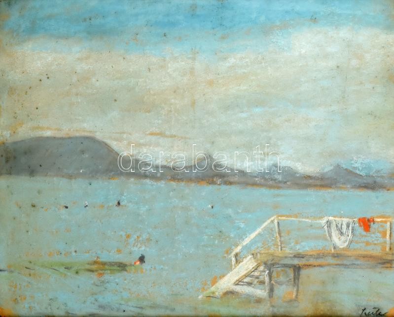 Szüle Péter (1886-1944): Balatoni táj. Pasztell, papír, jelzett. Üvegezett, korabeli, sérült fa keretben. 42×52 cm