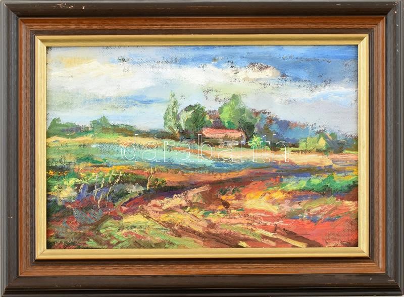 Várszegi Tamás (1946-): Színes alföldi táj. Olaj, farost. Jelzett. Fa ...