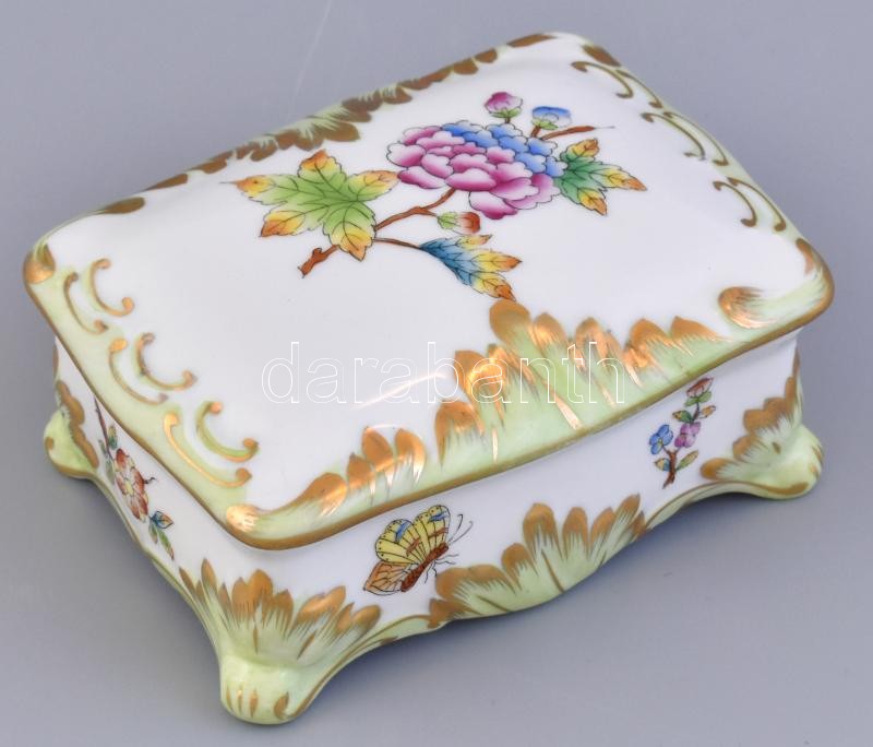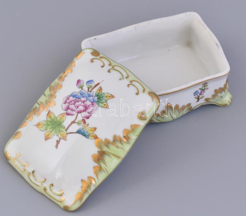 Herendi Viktória mintás bonbonniere. Kézzel festett, jelzett, hibátlan 11x9 cm