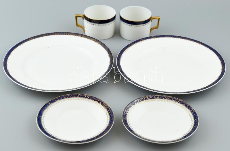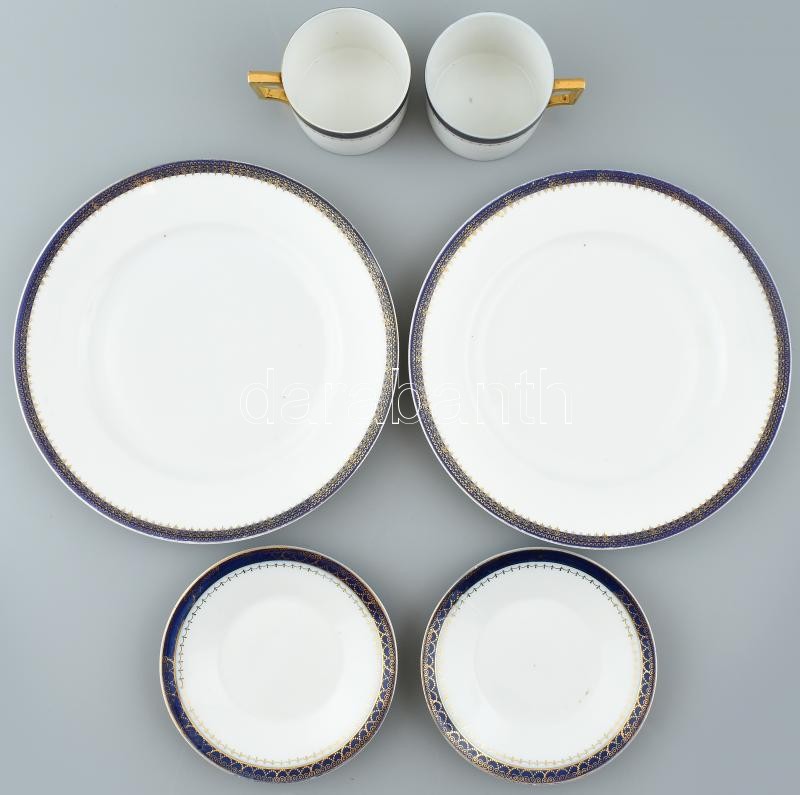 Két személyes régi porcelán reggeliző készlet. Kézzel festett, jelzés ...