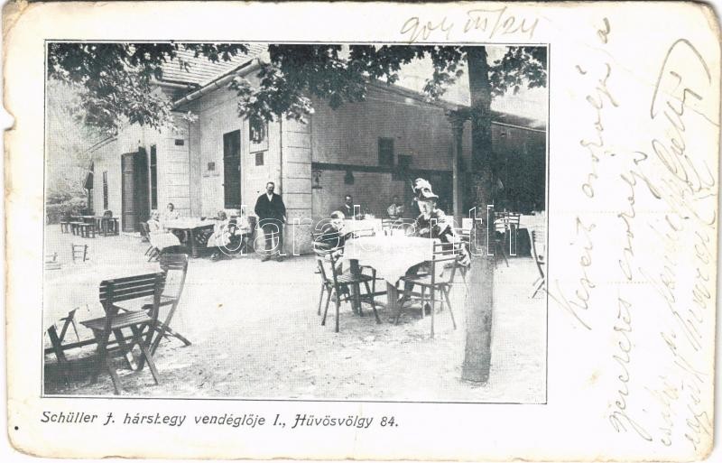 1904 Budapest II. Hűvösvölgy, Schüller J. hárshegyi vendéglője, kerthelyiség (b)