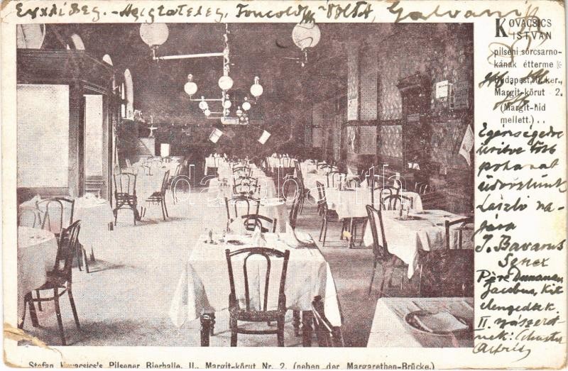 https://www.darabanth.com/en/401-Online-auction/401.0/Postcards/Hungary~1500001/1906-Budapest-II-Kovacsics-Istvan-pilseni-sorcsarnokanak-etterme-belso-Margit-korut-2-Ma~II2458975