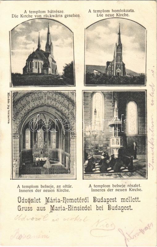 1907 Budapest II. Máriaremete, a templom hátrésze és homlokzata, belső...