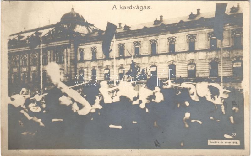 1916 Budapest I. Kardvágás. IV. Károly király koronázása. Révész és Biró felvétele. Magyar Rotophot Társaság (fl)