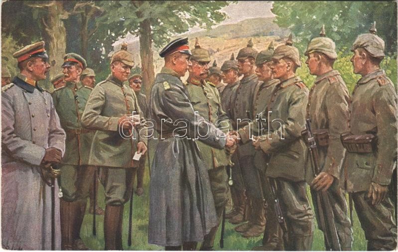 Unsere Kronprinz in den Argonnen Eiserne Kreuze verteilend / WWI German military art postcard, Crown Prince Wilhelm s: A. Roloff (EK)
