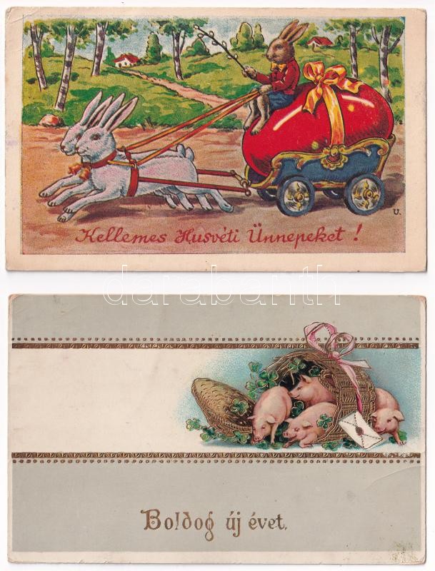 7 db RÉGI üdvözlő motívum képeslap lithokkal / 7 pre-1945 greeting motive postcards with lithos
