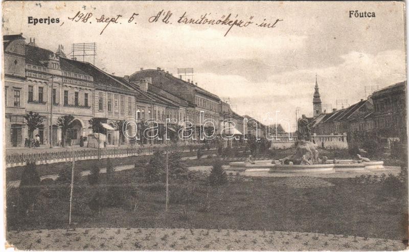 1918 Eperjes, Presov; Fő utca, üzletek. Cattarino S. utóda Földes Samu kiadása / main street, shops (EM)