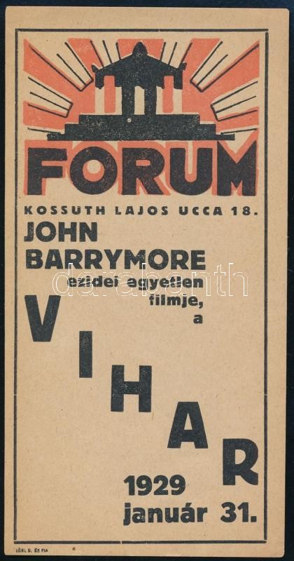 1929 Fórum filmszínház, John Barrymore: Vihar c. filmjének reklám szám...
