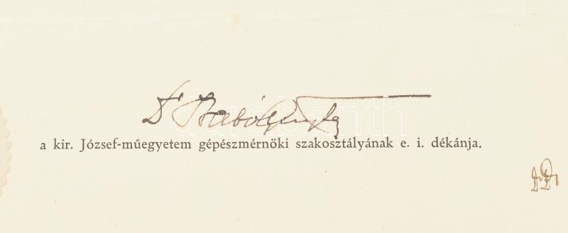 1924 Kir. József Műegyetem rektora által kiállított gépészmérnöki okle...