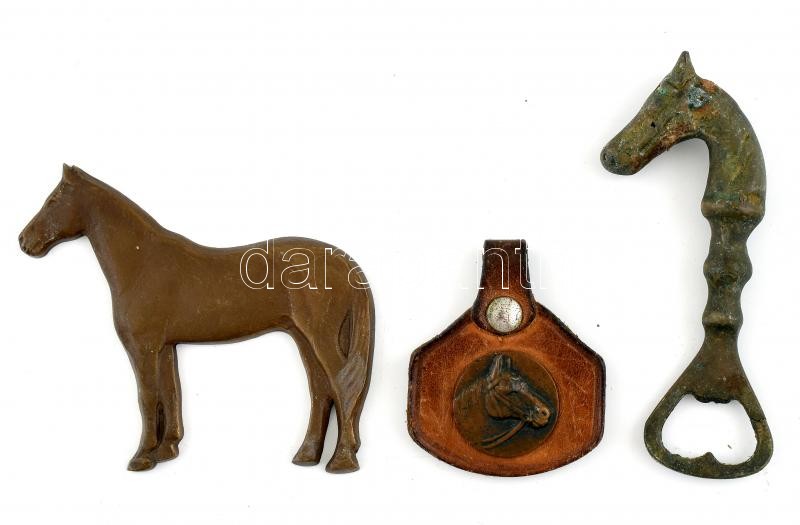 3 db lovas témájú tárgy, sörnyitó, kulcstartó, stb.