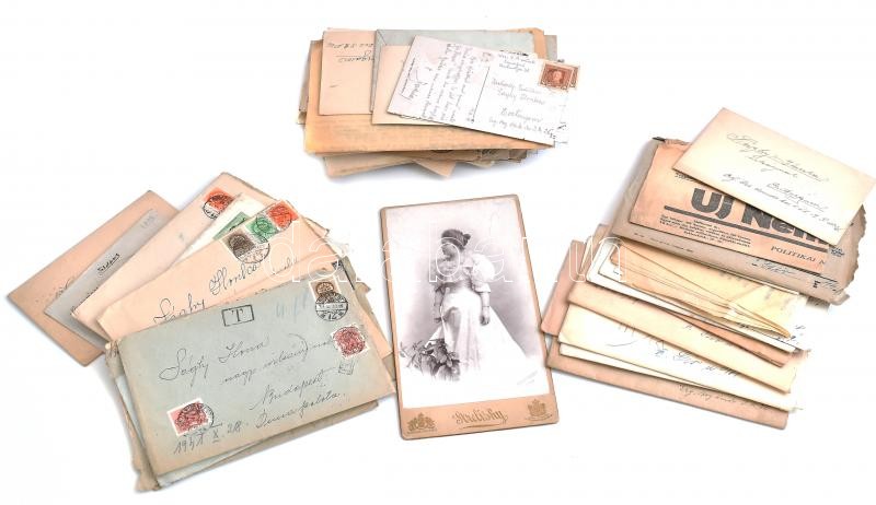 cca 1880-1940 Sághy Ilona költő, írónő levelezése. Neki írt szerelmes és irodalmi témájú levelek, valamint fényképe egy cipós dobozban.