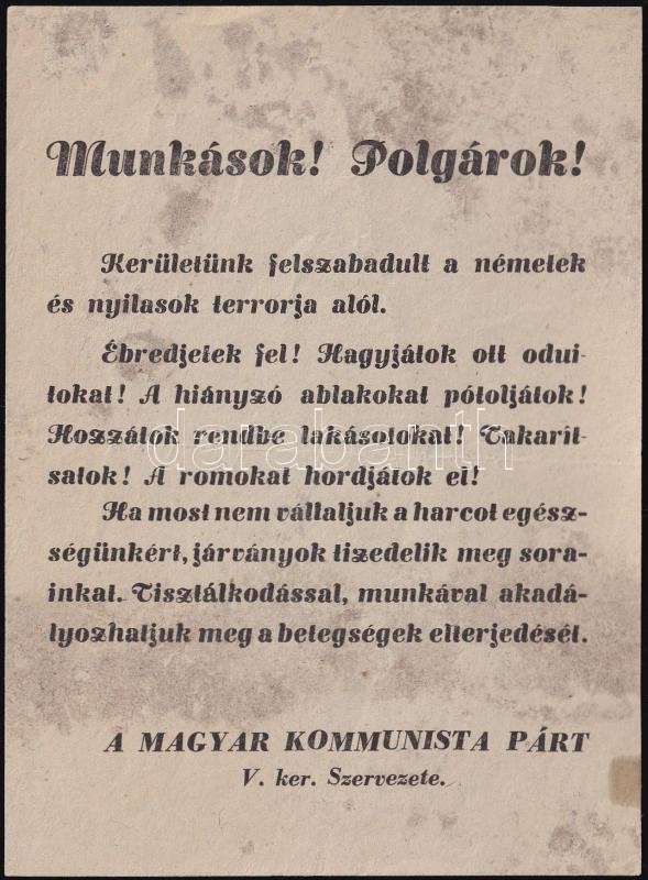 1945 "Munkások! Polgárok!" MKP V. ker. szervezetének röplapj...