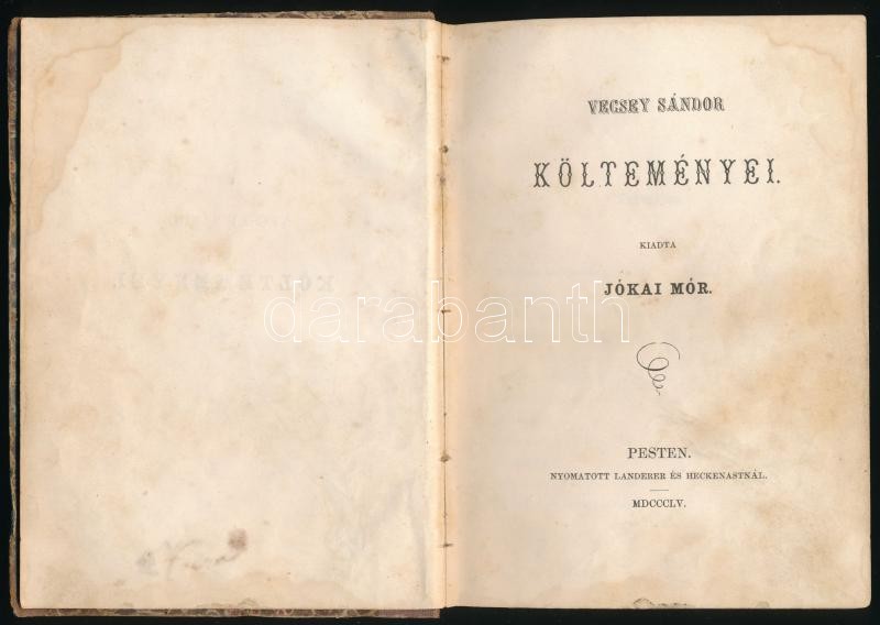 https://www.darabanth.com/en/402-Online-auction/402.0/Books/Books-Other-rarities~1500019/Vecsey-Sandor-koltemenyei-Kiadta-Jokai-Mor-Pest-1854-Landerer-es-Heckenast-8plus178-p-Kor~II2443995