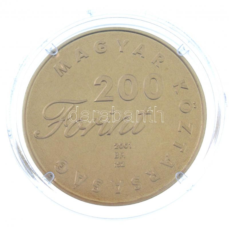 https://www.darabanth.com/en/402-Online-auction/402.0/Numismatics/Hungarian-coins-and-coins-with-Hungarian-mint-marks~2000008/2001-200Ft-Cu-Pal-utcai-fiuk-kapszulaban-TBU--Adamo-EM175~II2474227