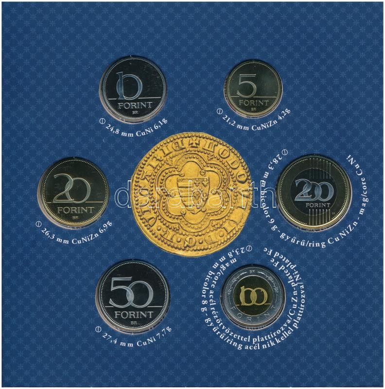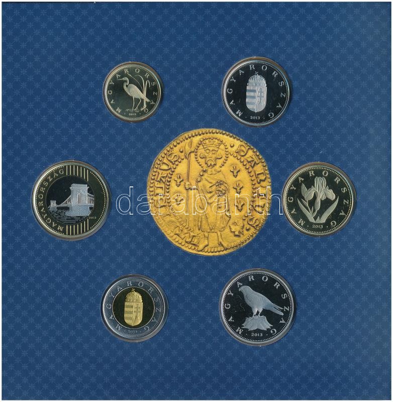 https://www.darabanth.com/en/402-Online-auction/402.0/Numismatics/Hungarian-coins-and-coins-with-Hungarian-mint-marks~2000008/2013-5Ft-200Ft-6xklf-forgalmi-sor-szettben-plus-2013-I-Lajos-aranyforintja-aranyozott-Ag-jelzet~II2472805