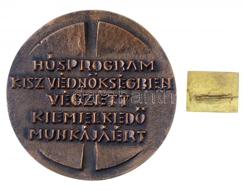 DN "KISZ Védnökség / Húsprogram KISZ Védnökségben végzett kiemelkedő munkájáért" Br emlékérem eredeti dísztokban (80mm) + "KISZ Húsprogram Védnökség" műgyantás jelvény T:1-