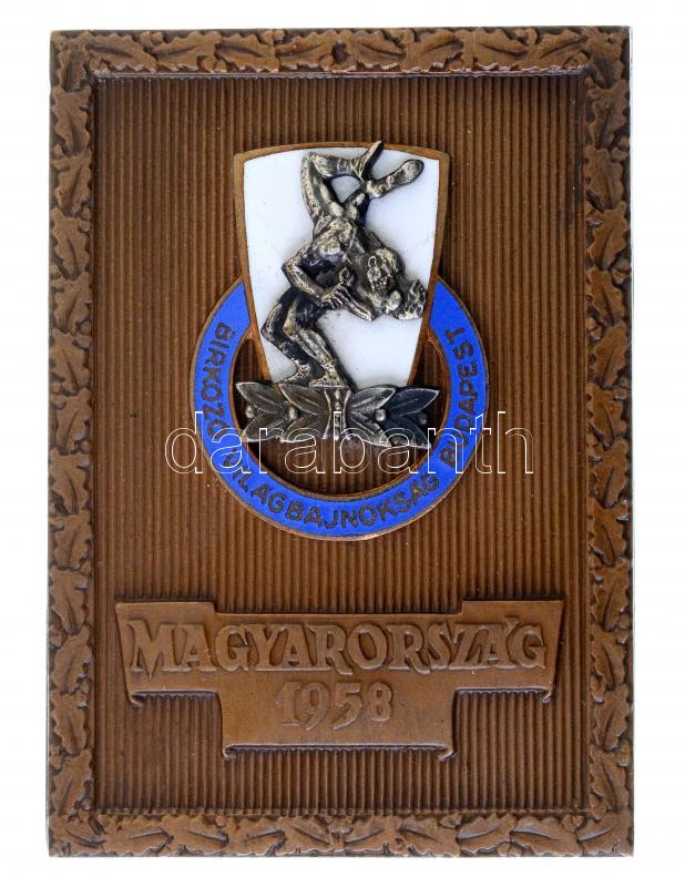 1958. "Birkózó Világbajnokság Budapest - Magyarország 1958" részben zománcozott Br díjplakett (80x57mm) T:2 kis zománchiba