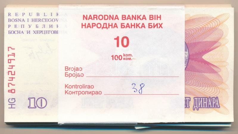 Description: Bosznia-Hercegovina 1992. 10D (84x) eredeti banki kötegelővel, sorszámkövetők T:I,I-