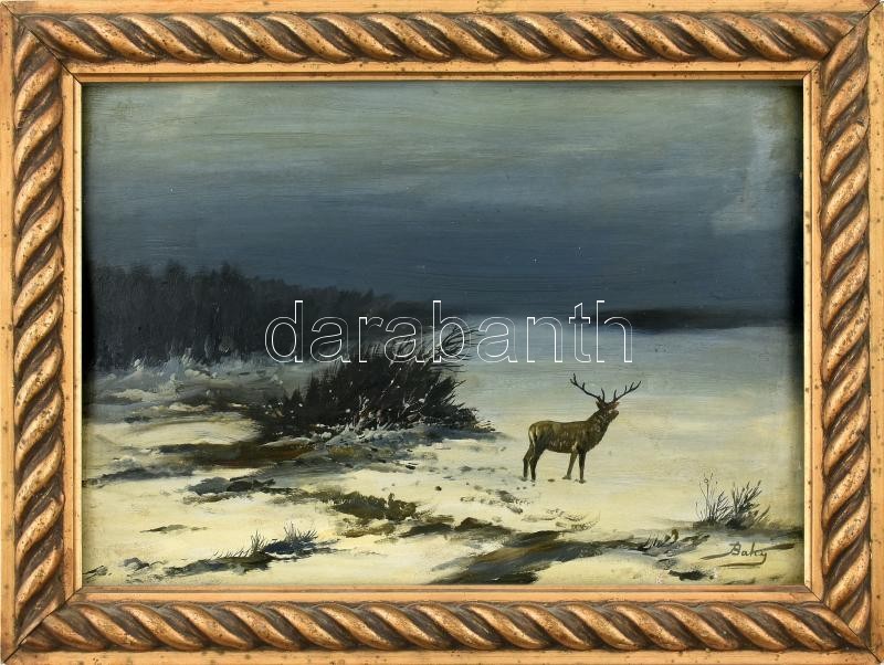 https://www.darabanth.com/en/402-Online-auction/402.0/Paintings-and-graphics/Paintings-and-graphics~500001/Baky-Albert-1868-1944-Szarvas-a-hoban-Olaj-karton-jelzett-Korabeli-dekorativ-kisse-kopott~II2472626