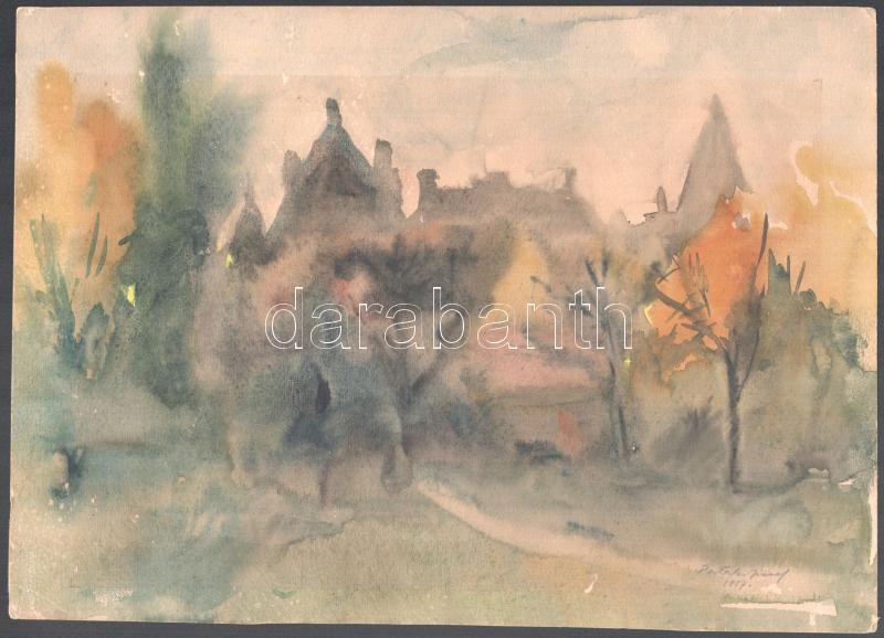 Pataki József (1928-1995): Táj, 1957. Akvarell, papír, jelzett. 23x32 ...