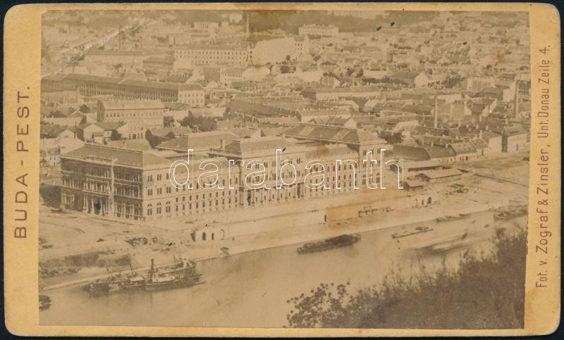 cca 1880 Budapest, Vámpalota a Gellért-hegyről, keményhátú fotó Zograf...