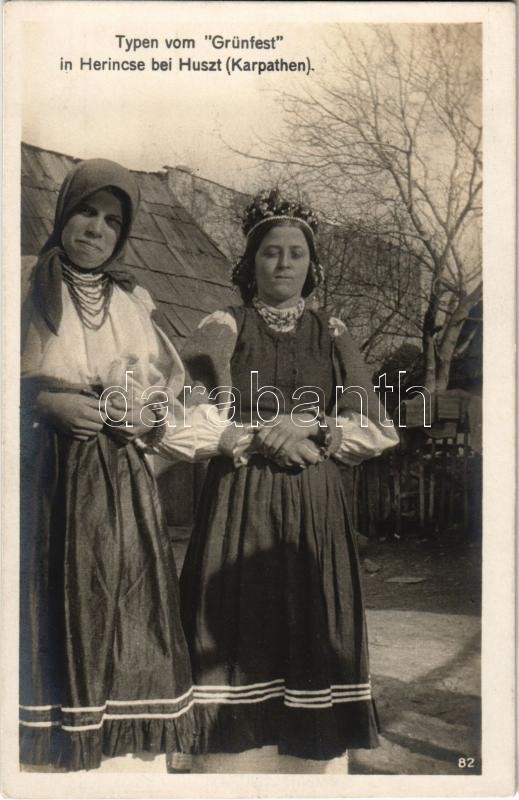 Description: Herincse, Horinchovo; Typen vom "Grünfest" in Herincse bei Huszt (Karpathen). Verlag P. Wever Nr. 82. / Kárpátaljai folklór, herincsi asszonyok népviseletben / Transcarpathian folklore, women in traditional costumes