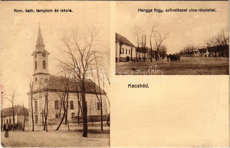 1930 Kecskéd, Római katolikus templom és iskola, hangya fogyasztási sz...
