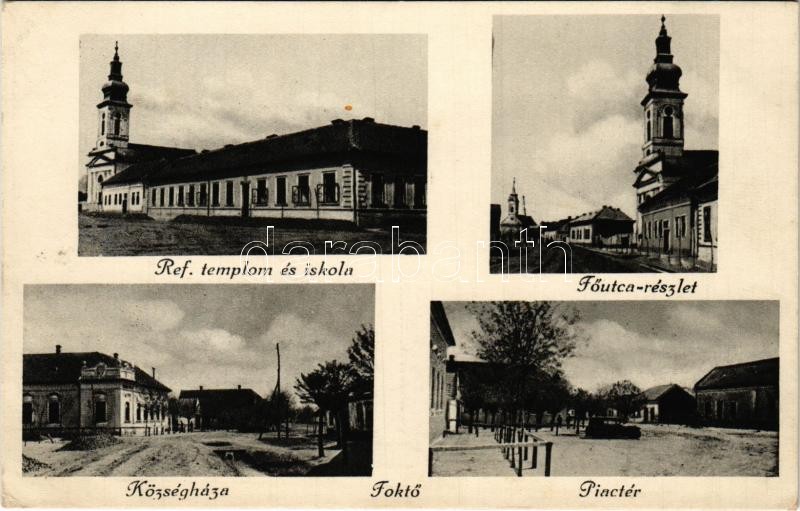 Foktő, Református templom és iskola, Fő utca, Piactér, Községháza (EK)