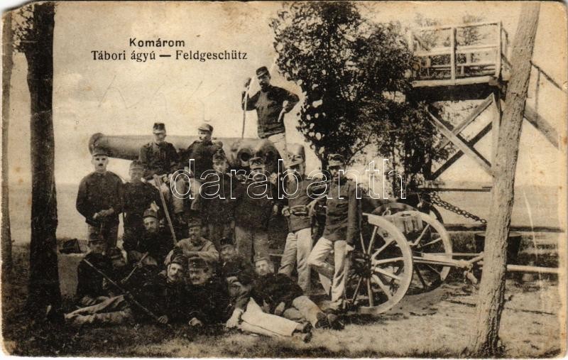 Komárom, Komárnó; Tábori ágyú katonákkal / K.u.k. Feldgeschütz / artillery soldiers with a cannon (EM)