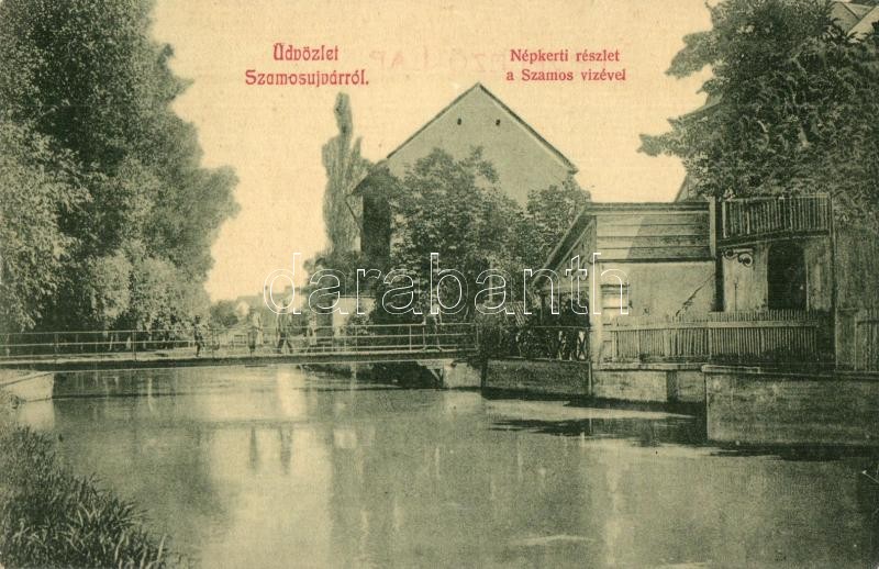 1910 Szamosújvár, Gherla; Népkerti részlet a Szamos vizével, híd. W. L...