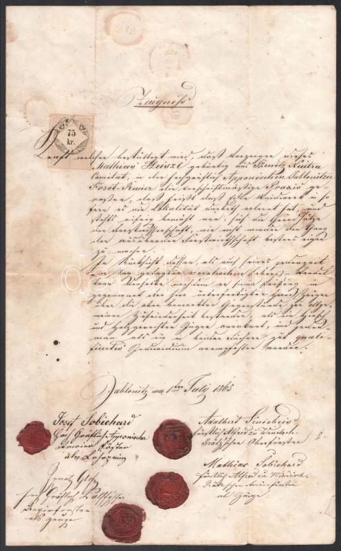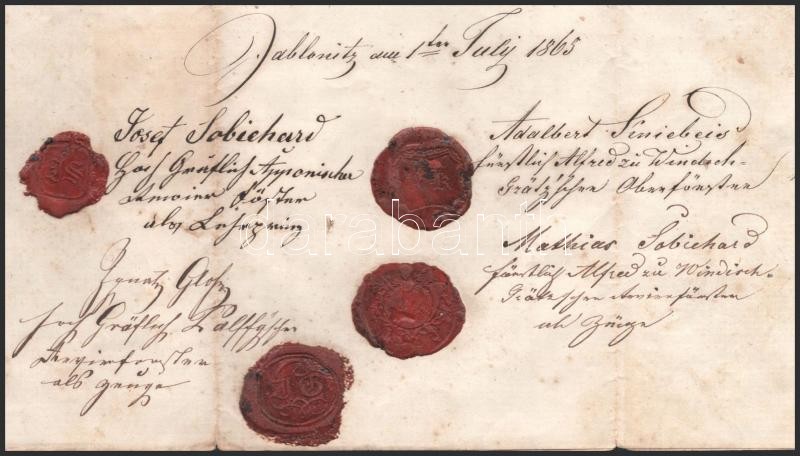 1865 Jablánc (Jablonitz) szerződés helyi nemesek viaszpecsétes aláírásaIval
