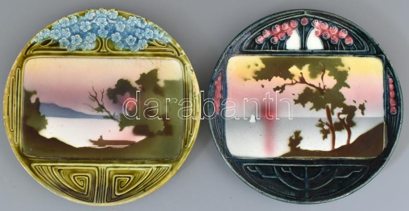 2 db körmöczbányai fajansz dísz tálka Balaton dekorral. Jelzett. resta...