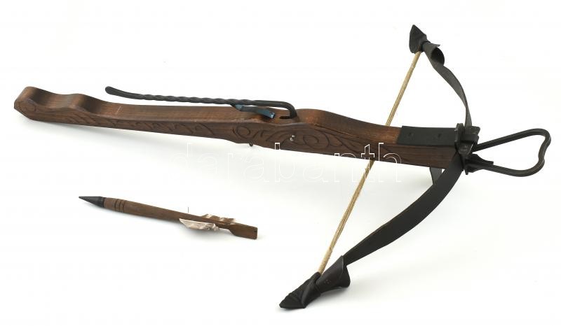 Számszeríj gyűjtői replika. Vas, fa, hozzá nyíl. 77 cm