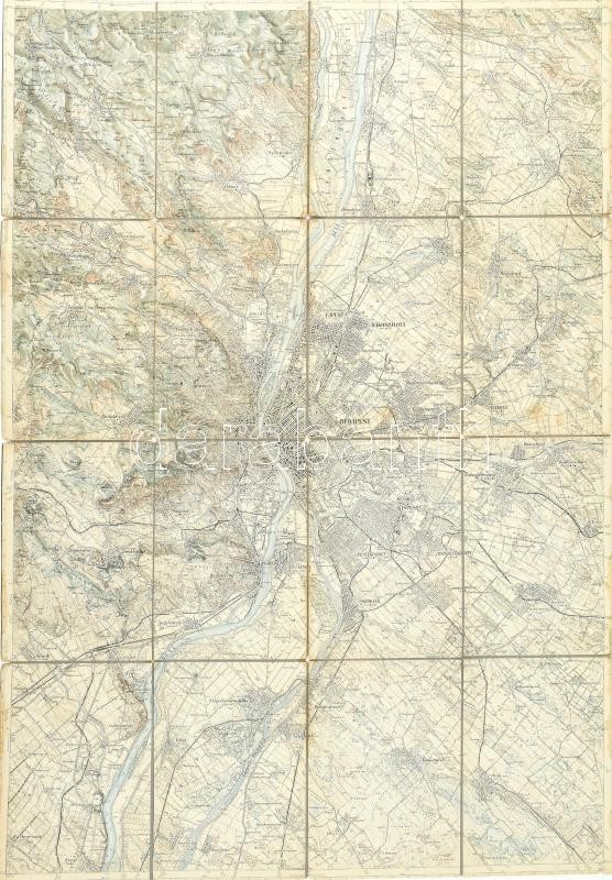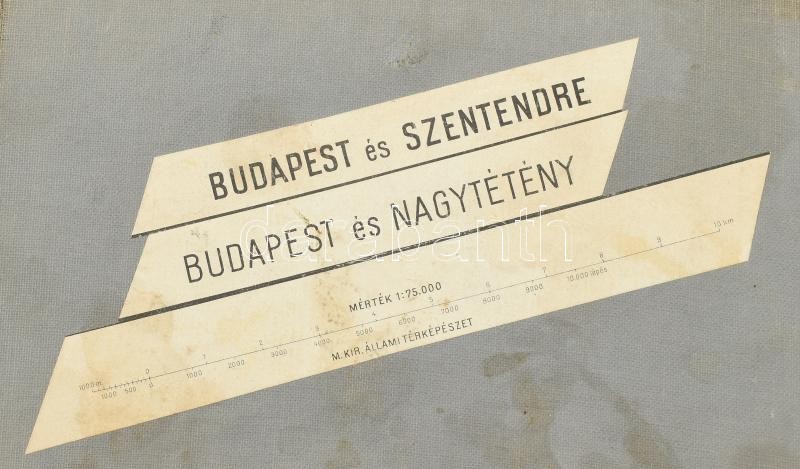 Description: cca 1920-1930 Budapest, Szentendre és Nagytétény térképe, 1 : 75.000, M. Kir. Állami Térképészet, vászonra kasírozva, kisebb foltokkal, szakadásokkal, 76,5x53 cm