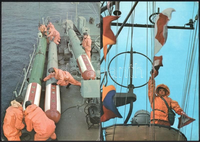 12 db színes kép az NDK hadsereg különféle alakulatairól, benne haditengerészet, tankok, stb., hátoldalán többnyelvű magyarázat, 21×14,7 cm