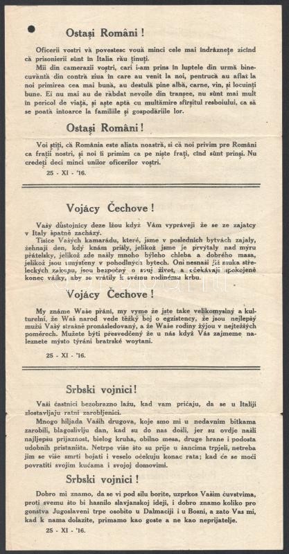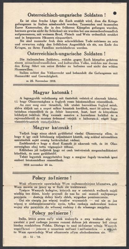 1915 I. világháborús olasz röplap a monarchia összes nyelvén 33x17 cm