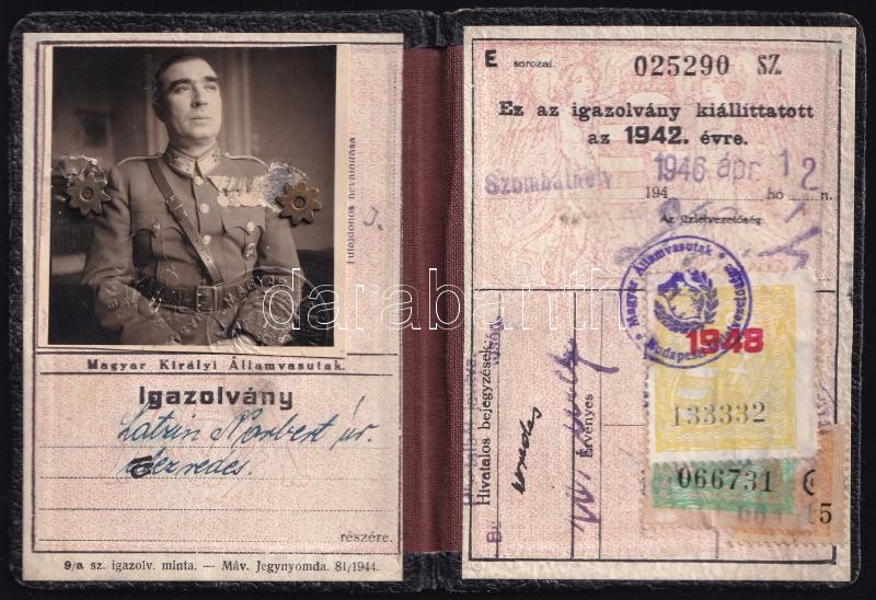 https://www.darabanth.com/en/403-Online-auction/403.0/Art-and-other-collectibles/Military~500032/1942-1948-Latzin-Norbert-ezredes-fenykepes-vasuti-igazolvanya-erdekessege-hogy-1948-banis-ha~II2481942