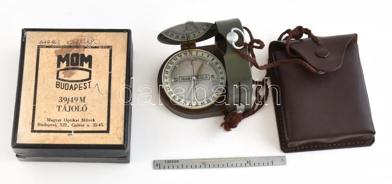 39/49 M MOM tájoló eredeti dobozában, vonalzóval, hibás